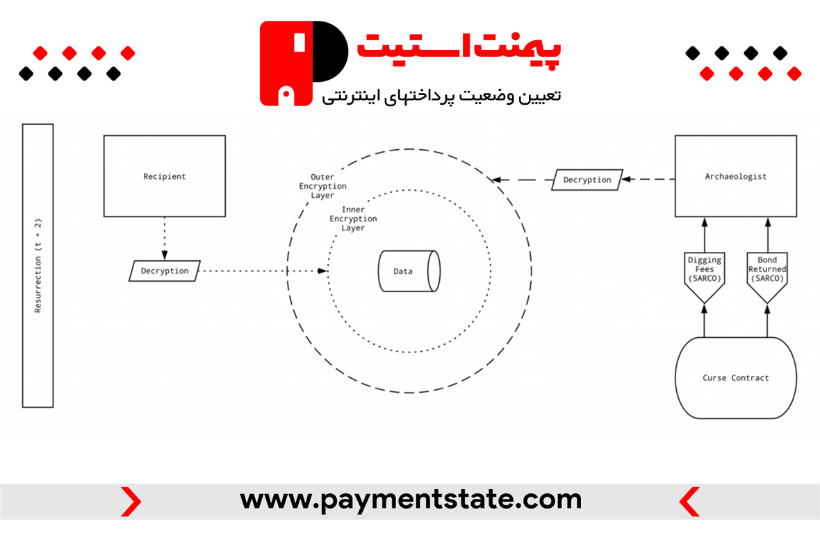 با این حال، گیرندگان فقط می توانند لایه رمزگذاری داخلی یک Sarcophagus را رمزگشایی کنند. ابتدا یک archaeologist باید لایه بیرونی را رمزگشایی کند. archaeologist اکتورهای در شبکه Sarcophagus هستند که نودهایی را اجرا می کنند تا ببینند آیا Sarcophagus ها نیاز به رمزگشایی دارند یا خیر. آنها همچنین توکنهای SARCO (توکن بومی پروتکل) را به اشتراک میگذارند که اگر این داده ها خیلی زود یا دیر رمزگشایی شدند یا خارج از شرایط توافق بین embalmer و archaeologist عمل کردند، میتوانند آنها را مجازات کنند. داراییهای موجود در پورتفولیو همچنین میتوانند با قرار دادن یک تراکنش امضا شده (اما منتشر نشده) در یک Sarcophagus به یک آدرس کیف پول مشخص منتقل شوند. سپس گیرنده(ها) - recipient آن تراکنش را برای اجرای اقدامات وراثت دارایی منتشر می کنند.